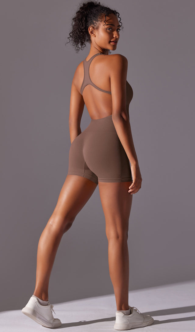 Our seamless onesies have an open back and are made from a functional, all-season fabric.